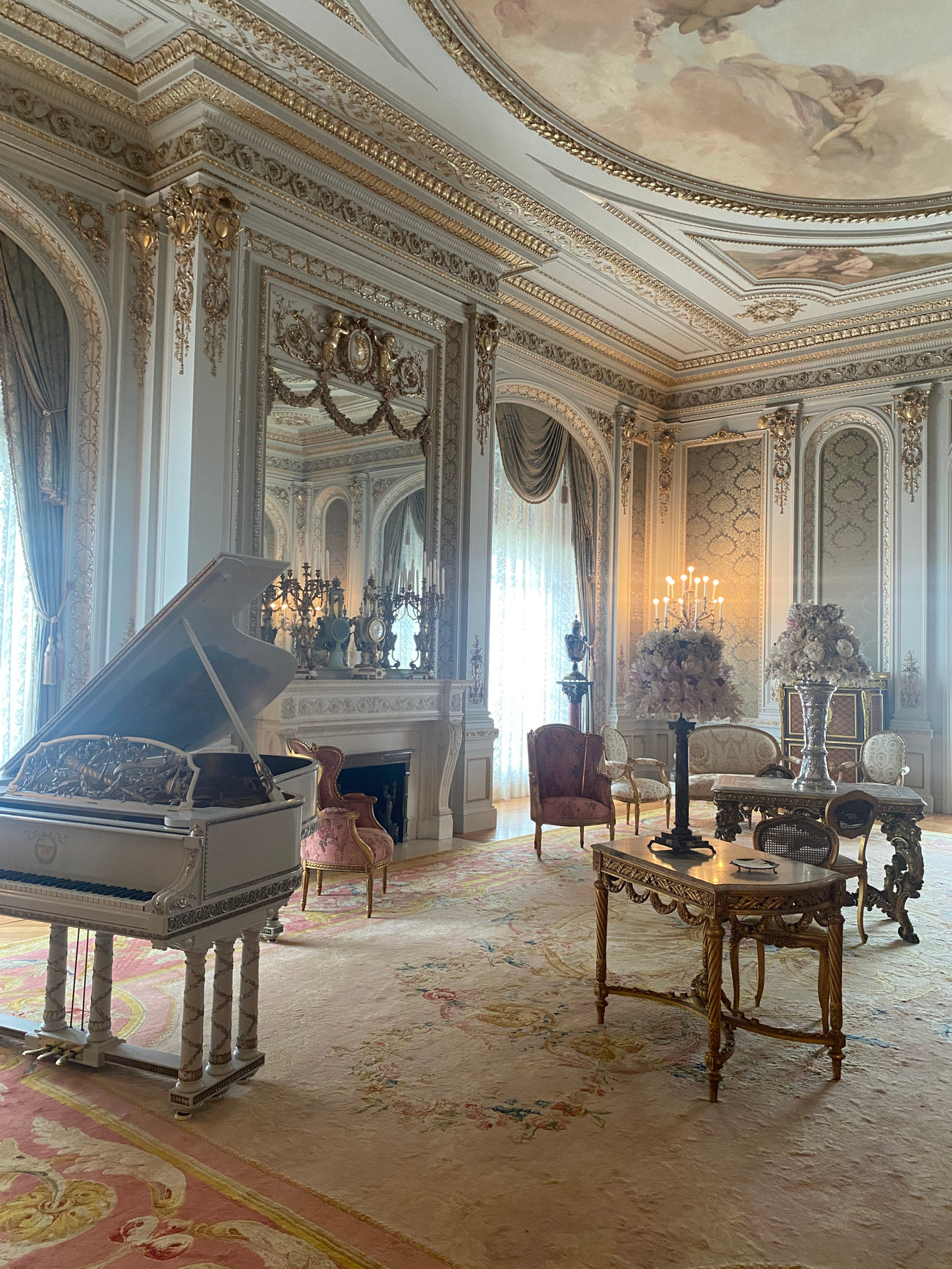 The grand entrance, framed by towering white columns, sets the stage for what’s inside—ornate ballrooms, hand-carved woodwork, intricate stained glass, and lavish chandeliers. Every room feels like a step back in time, offering a look into the luxurious lifestyle of early 20th-century Palm Beach.