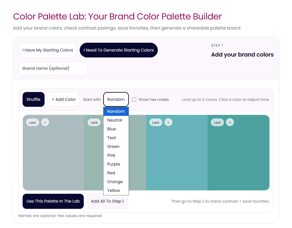 The Color Palette Lab is where colors stop being ideas and start becoming a system.