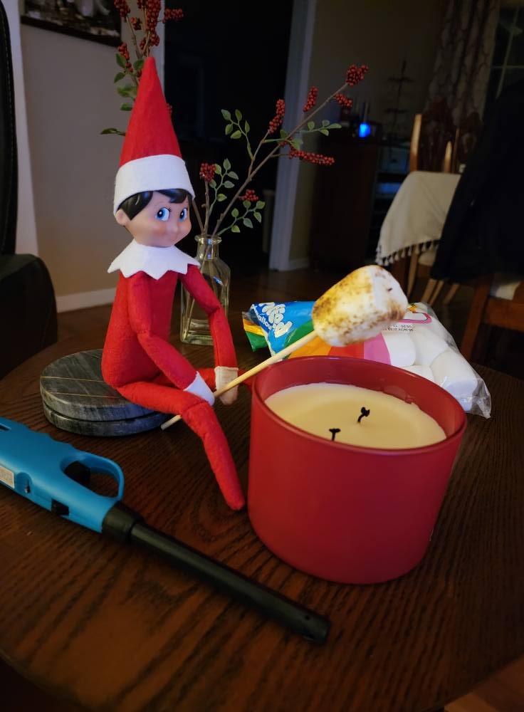 One of the cutest simple Elf on the Shelf ideas ever. Set your elf with a marshmallow over a candle. Kids lose their minds over this one. Bonus points for the mamas who turn this one into s’mores night! That’s my plan.