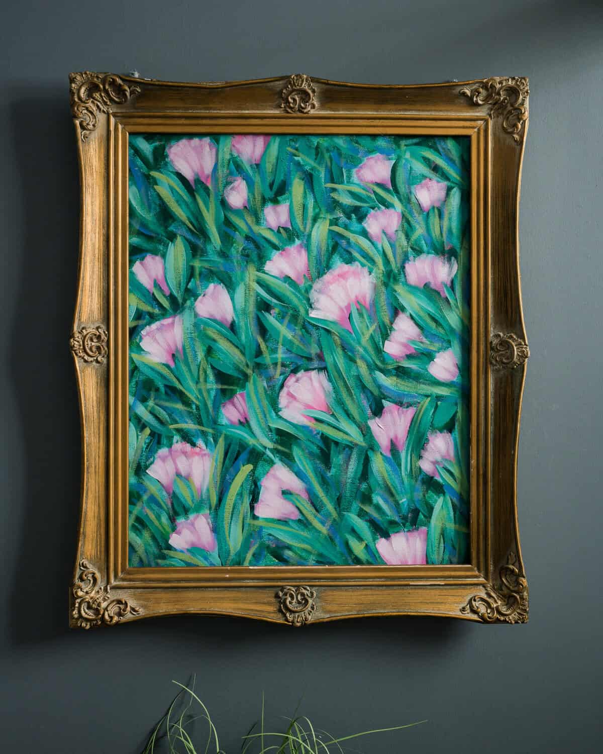 16×20 inches on canvas board | Acrylic | Offered unframed but vintage frame shown is available as of 8/3/25