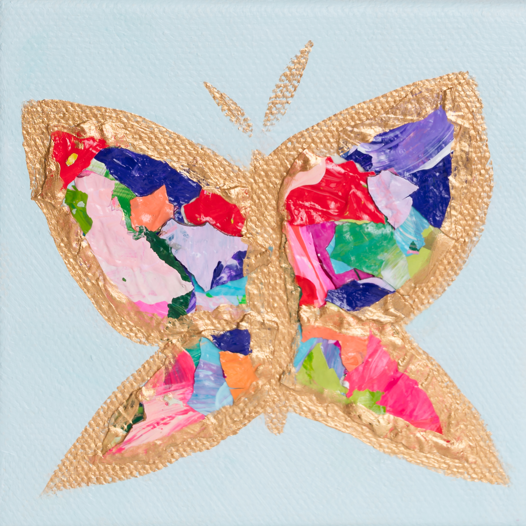 A joyful, one-of-a-kind collaged butterfly painting filled with bold color and playful texture using upcycled paint peels. Perfect for gifting or adding a pop of happy to your space.