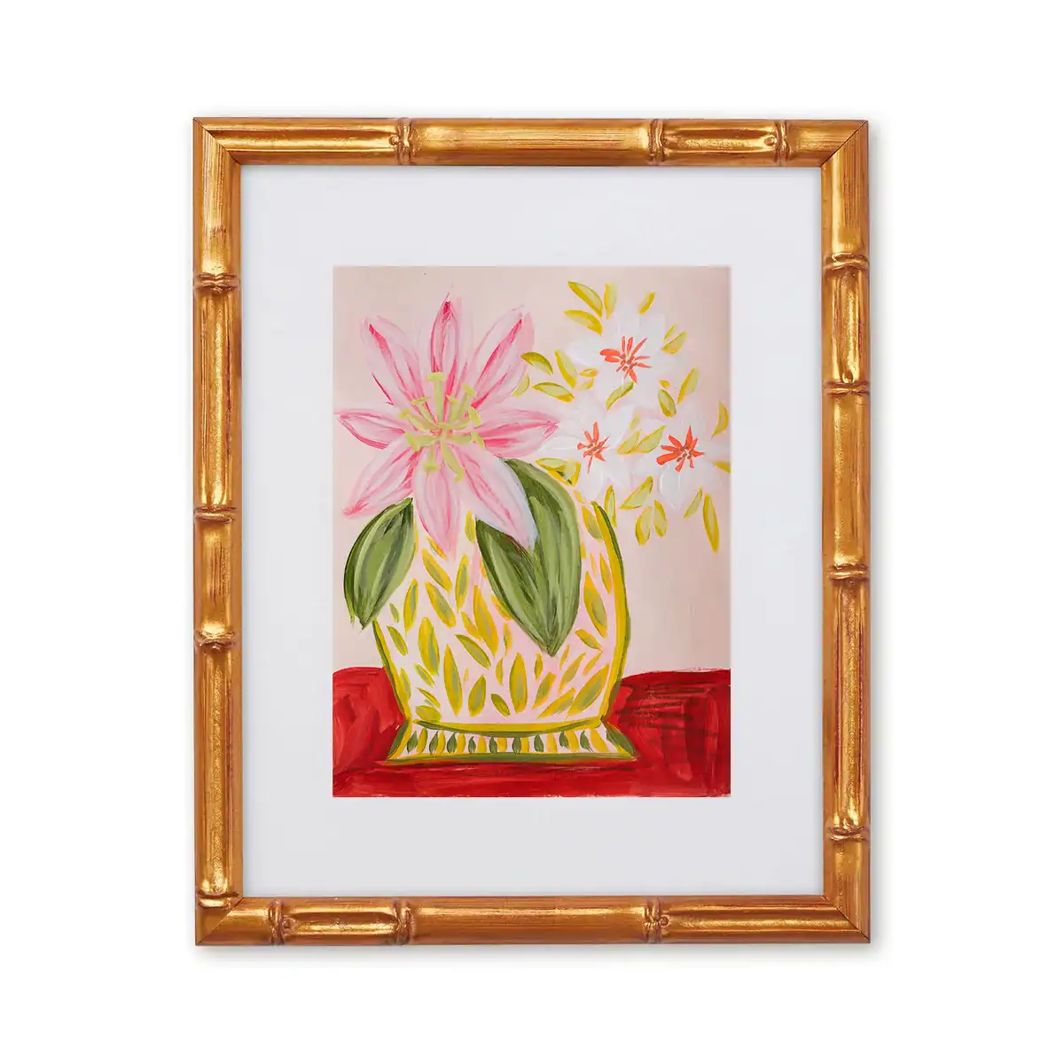 Sweet, simple, and full of charm, Study No. 2 captures the beauty of letting things breathe. Painted in a swirl of peachy pinks, deep reddish terracotta, creamy whites, and leafy greens, this floral composition plays with space and movement while keeping things ultra-feminine. It’s soft without being shy and would be right at home on its own or paired with its sisters.