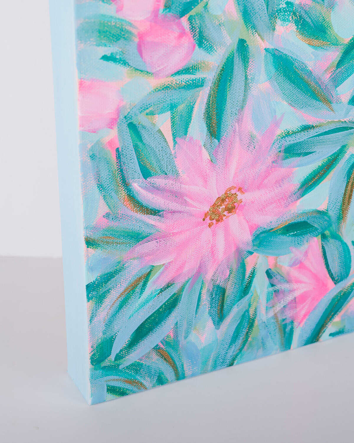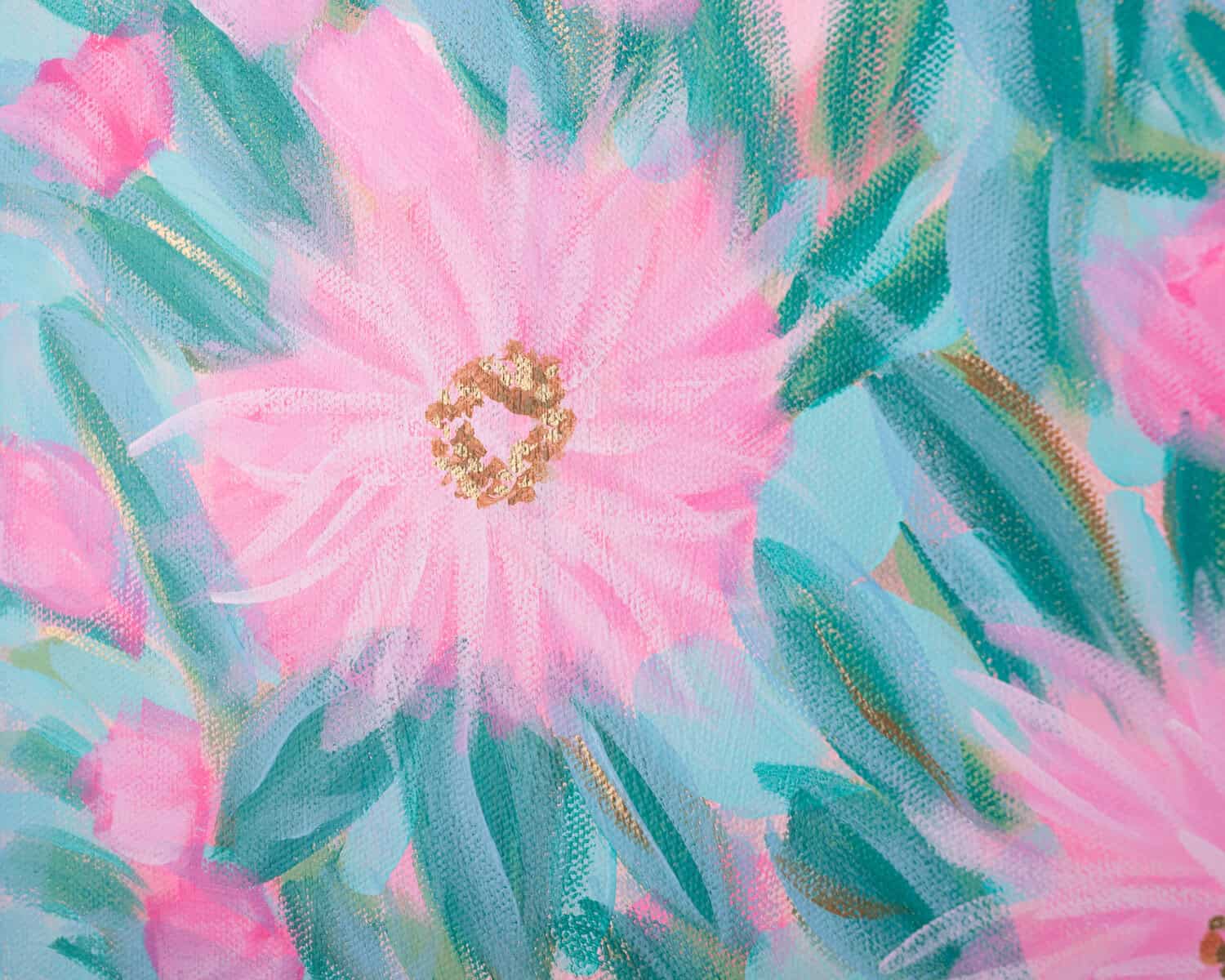 Soft, free, and full of quiet wonder, When the Wildflowers Whisper feels like leaning into nature’s gentlest moments. Lush strokes of pink and green sweep across the canvas, with golden flower centers adding a subtle shimmer. There’s a hush to this piece… a sense of being still enough to hear the language of the blooms, the stories carried on a soft breeze. It’s wild and delicate all at once.