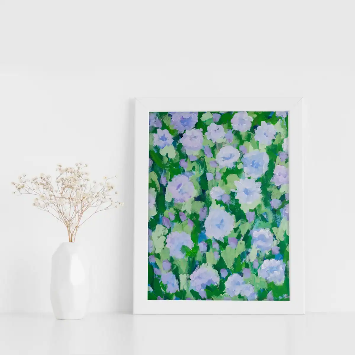 A field of soft lavender blooms stretches across this piece, inviting you to step in and stay awhile. You Should Be Here is a gentle, open-hearted painting full of movement, fresh greens, and a dreamy sense of presence. It’s the kind of moment you’d want to share with someone you love… or keep just for yourself as a quiet, everyday escape.