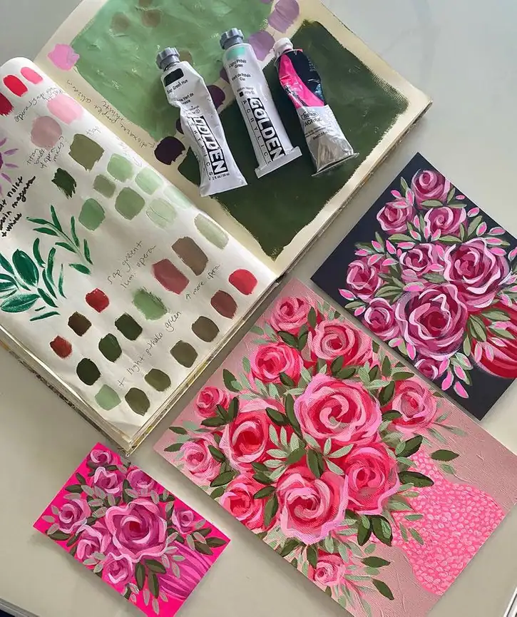 The most important step in developing your style is to just start. Don’t overthink it; pick up your brush and paint. When I first began, I experimented with various mediums, techniques, and styles. I still do! This exploration helps me understand my preferences. If you’re making art that doesn’t thrill you, take a step back and evaluate. Be specific about what you like or dislike in your work. Is it the brush strokes, the colors, or the subject? Journal about it in a brain dump style, similar to the morning pages exercise from Julia Cameron’s The Artist’s Way (affiliate link). This helps to clarify your thoughts and feelings about your work.